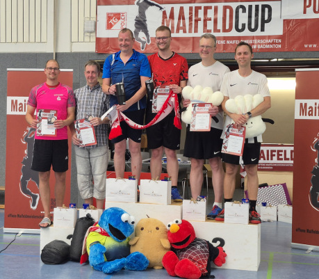 Am Samstag, den 28.06.25 nahm das Herrendoppel Björn Malessa und Rainer Bertuleit vom TV08 Baumbach am Maifeldcup in der Hobbyklasse teil. Für Björn und Rainer war dies das erste gemeinsame Badmintonturnier, an dem sie ihr Können unter Beweis stellen wollten. Bei sehr heißen Bedingungen in und außerhalb der Halle wurden zunächst in fünf Runden die vier Erstplatzierten im Schweizer-Turniersystem gesucht. Die Paarungen werden dabei auf Grundlage ihrer bisher erzielten Turnierergebnisse einem neuen Gegner zugelost. Anschließend wurden dann im Überkreuzvergleich das Halbfinale und Finale ausgetragen. Nach den ersten fünf Spielen belegten die beiden ungeschlagen den ersten Tabellenplatz unter allen 17 angetretenen Herrendoppel und trafen im Halbfinale auf die Viertplatzierten Schweighöfer / Rehorst, die sie wie in der Vorrunde erneut deutlich in zwei Sätzen besiegen konnten. Das Finale spielten sie dann ebenfalls erneut gegen das lokale Doppel Hammelmann / Noeske, die gefühlt die kompletten Zuschauer hinter sich wussten. Nach über neun Stunden in der Halle mussten sie nochmals alle Kräfte zusammenbringen und verpassten unglücklich im dritten Satz mit 19-21 den verdienten Turniersieg. Wir gratulieren den beiden zu ihrer Leistung und einem tollen zweiten Platz!